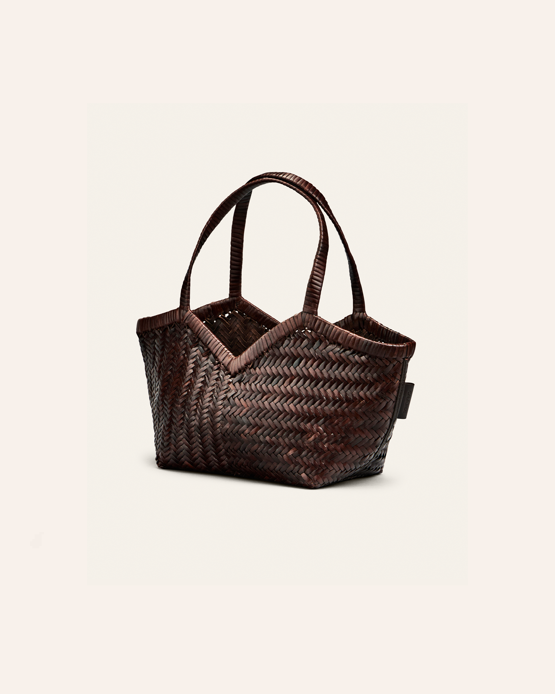 HUMI S is a small leather tote made to carry your essetians and a bit more. Handwoven from buffalo leather, it comes in three sizes and various color options. It features a v-shaped cutout on top, and slender handles for a comfortable fit on the shoulder.