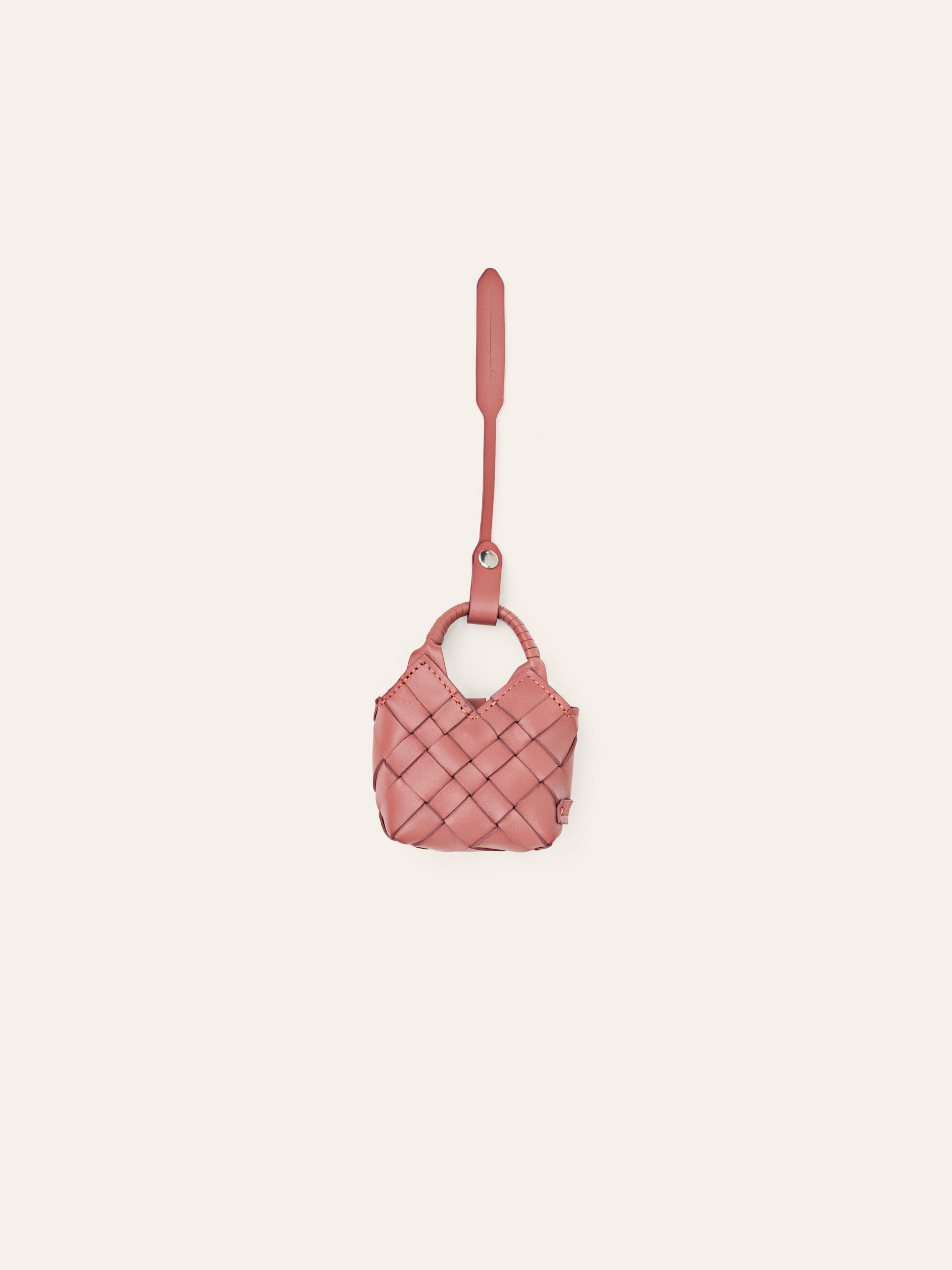 Despite its petite size it can fit AirPods, lipstick or any small item you would like to carry. The charms are crafted from leftover leather that was discarded in the bag-making process.
