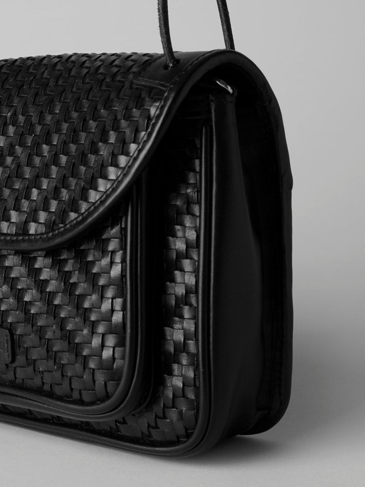 Niko - A versatile bag in a classic Cala Jade leather weave. It features an adjustable shoulder strap so it can be worn both cross-body and over the shoulder. Niko is sized to fit the essentials and is particularly versatile between day and evening as well as different looks.